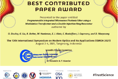 Okky has won the best paper award at the International Symposium on Modern Optics and Its Applications (ISMOA 2021). Congratulations Okky!