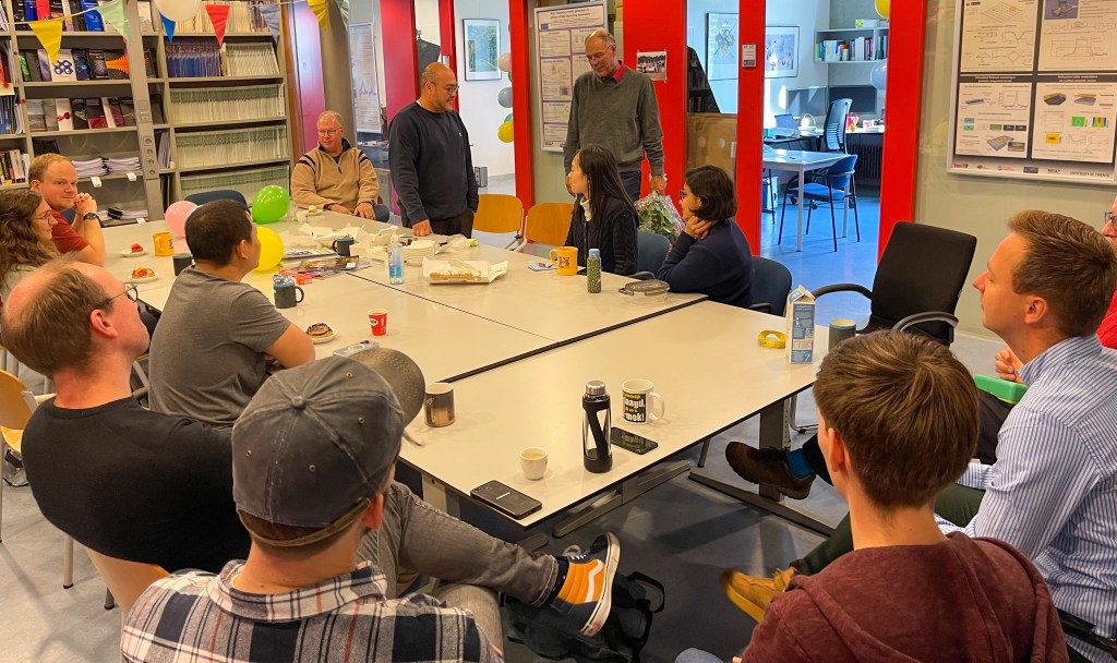 Roland presented in a hybrid in-person and online defense. After the defense he received a present from the whole group. Congrats Roland!