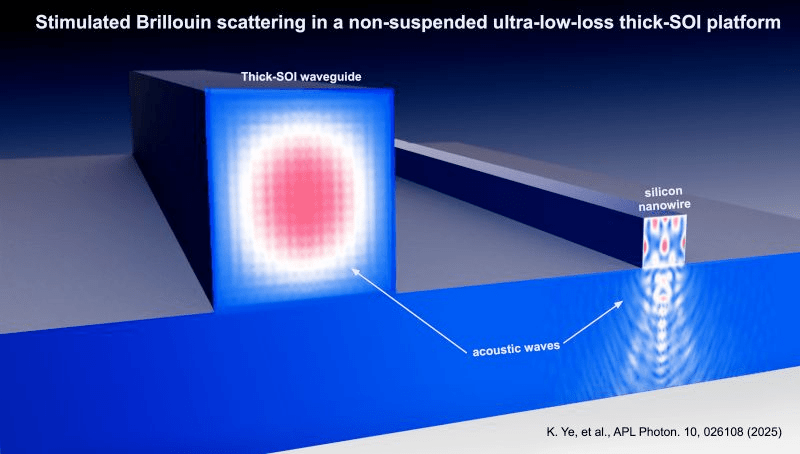 For years, Stimulated Brillouin scattering (SBS) in silicon photonics has been primarily explored in suspended SOI platforms, due to acoustic leakage in standard silicon nanowire structures. In this work, we overcome this long-standing challenge by demonstrating that increasing the waveguide dimension can effectively confine optically generated sound waves without suspension.Congrats, Steven!